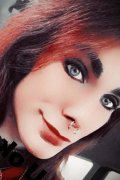 Skin: fair Eyes color: blue Hair length: long Hair type: straight Hair color: reddish Body: piercings, tattoos Country and religion Nationality: